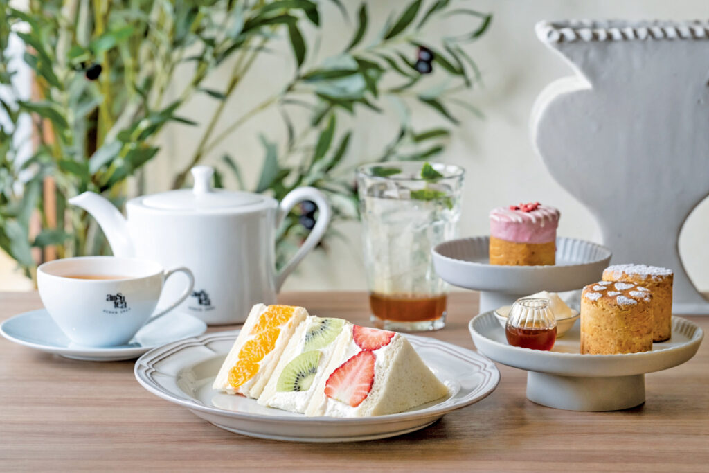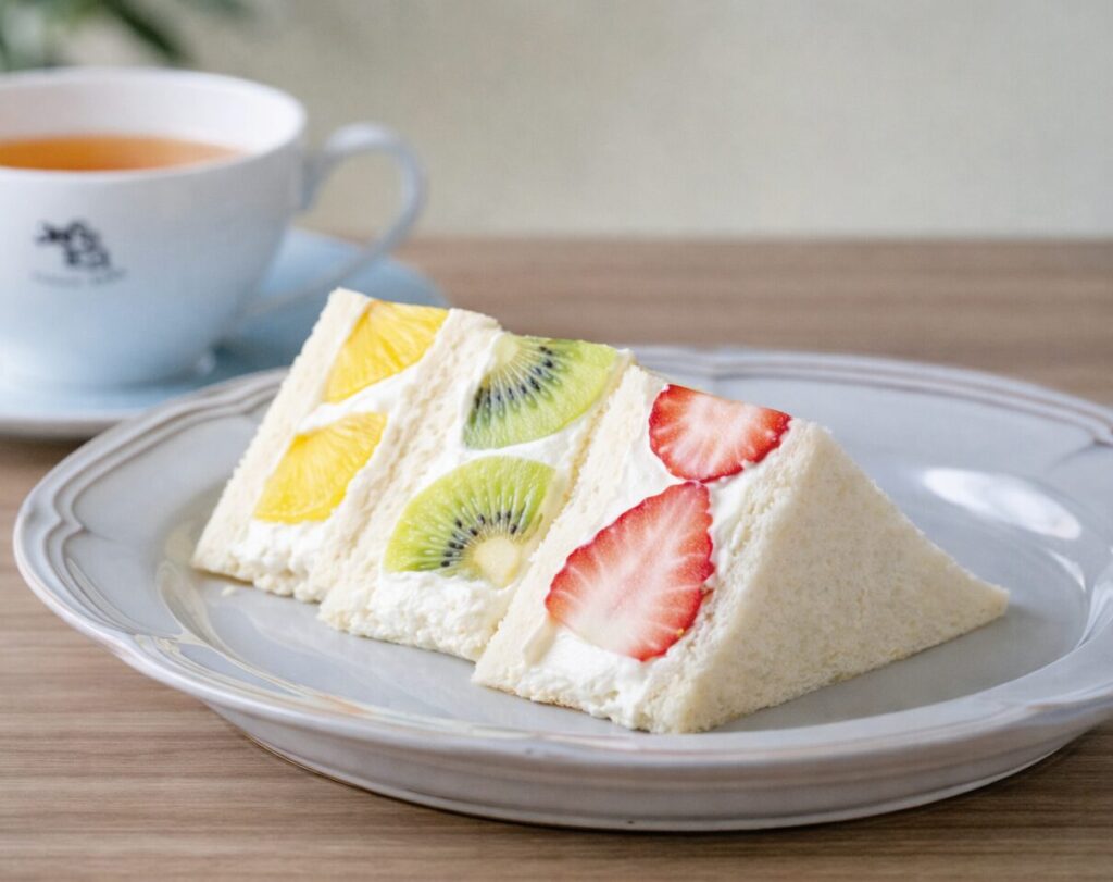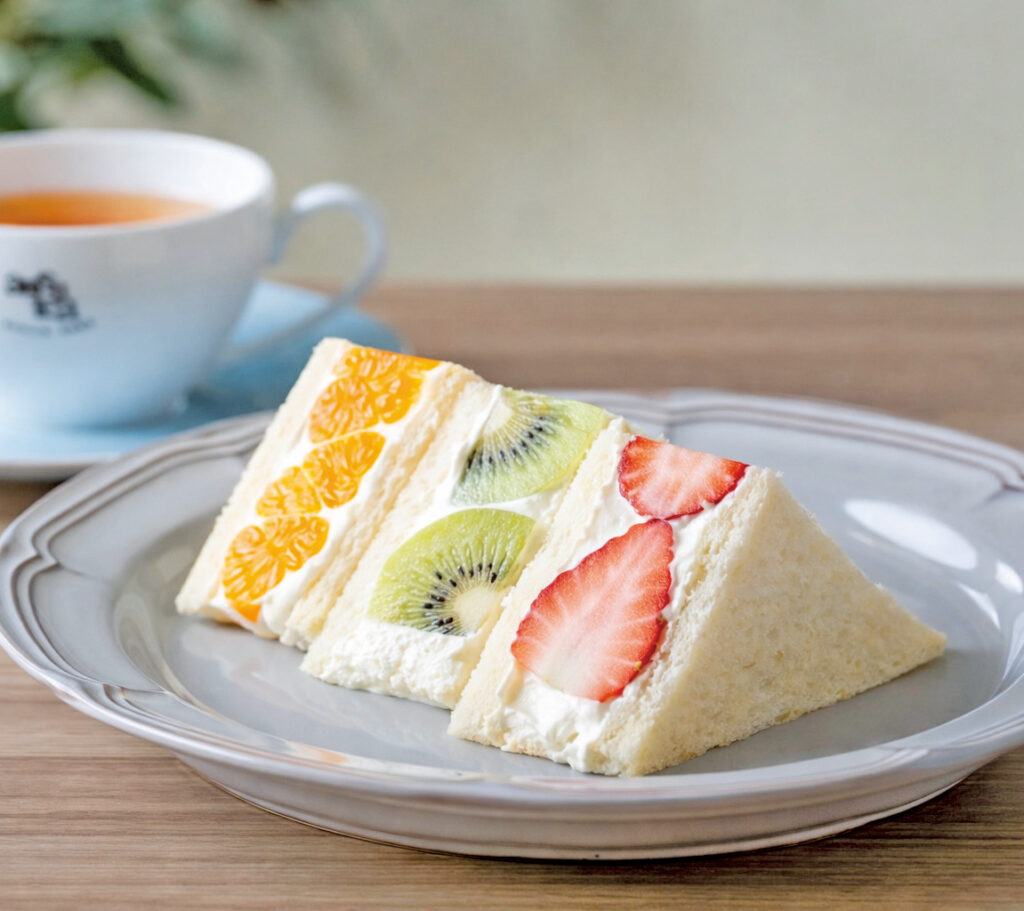 ふんわり食パンに、いちご・キウイ・みかんを合わせた彩り豊かなフルーツサンド。軽やかなクリームが果実の甘みを引き立て、紅茶とともに優しく楽しめます。