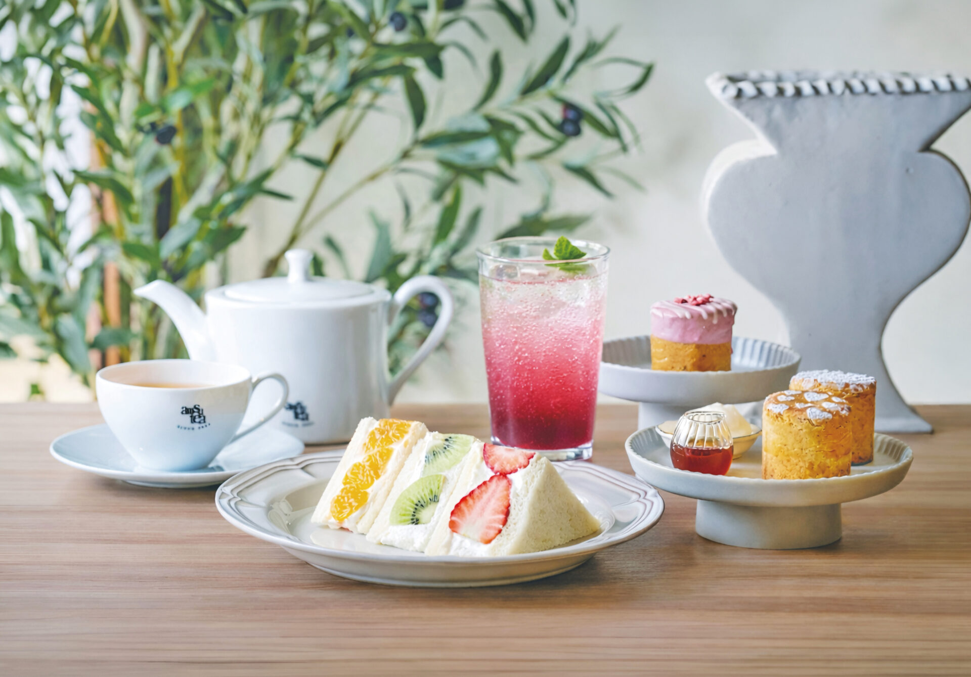 ふんわり食パンに、いちご・キウイ・パインを合わせた彩り豊かなフルーツサンド。軽やかなクリームが果実の甘みを引き立て、紅茶とともに優しく楽しめます。