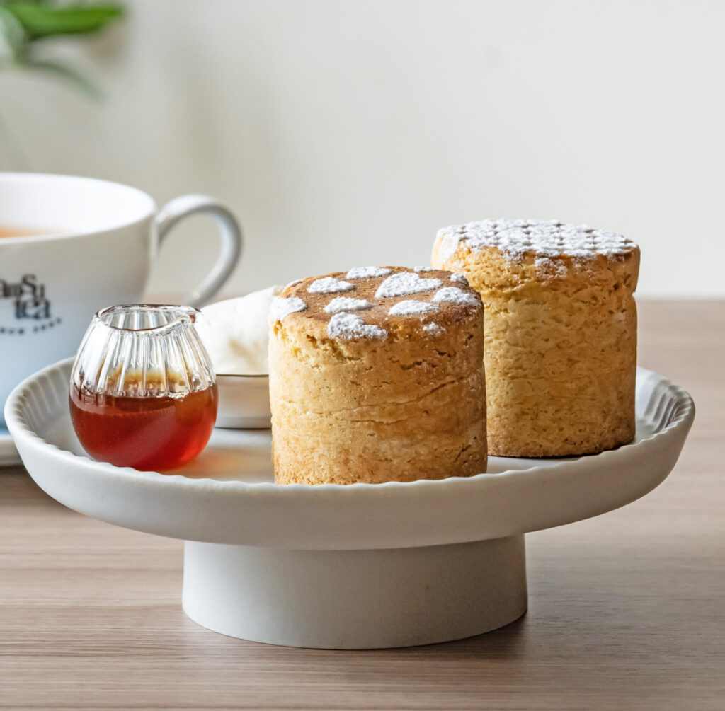 外はさっくり、中はしっとりと焼き上げたスコーン。クロテッドクリームとはちみつを添えて、紅茶とともにお楽しみください。